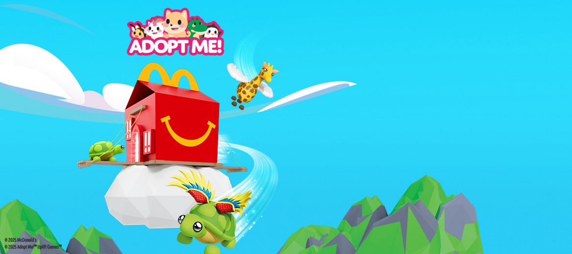 حلق واستمتع بوقت اللعب مع حيوانات أدوبت مي الرائعة! امنحهم أجنحة جديدة الآن مع كل وجبة هابي ميل.