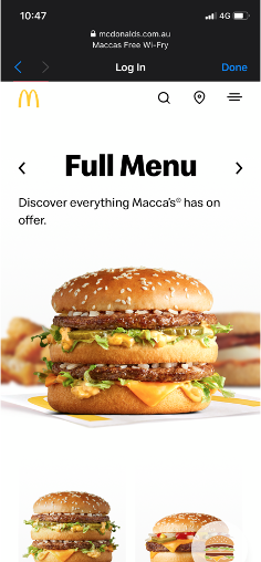 Step 4. You will be directed to the McDonald’s website home page. When you see this, you are connected and ready to take advantage of Macca’s free Wi-Fry®.