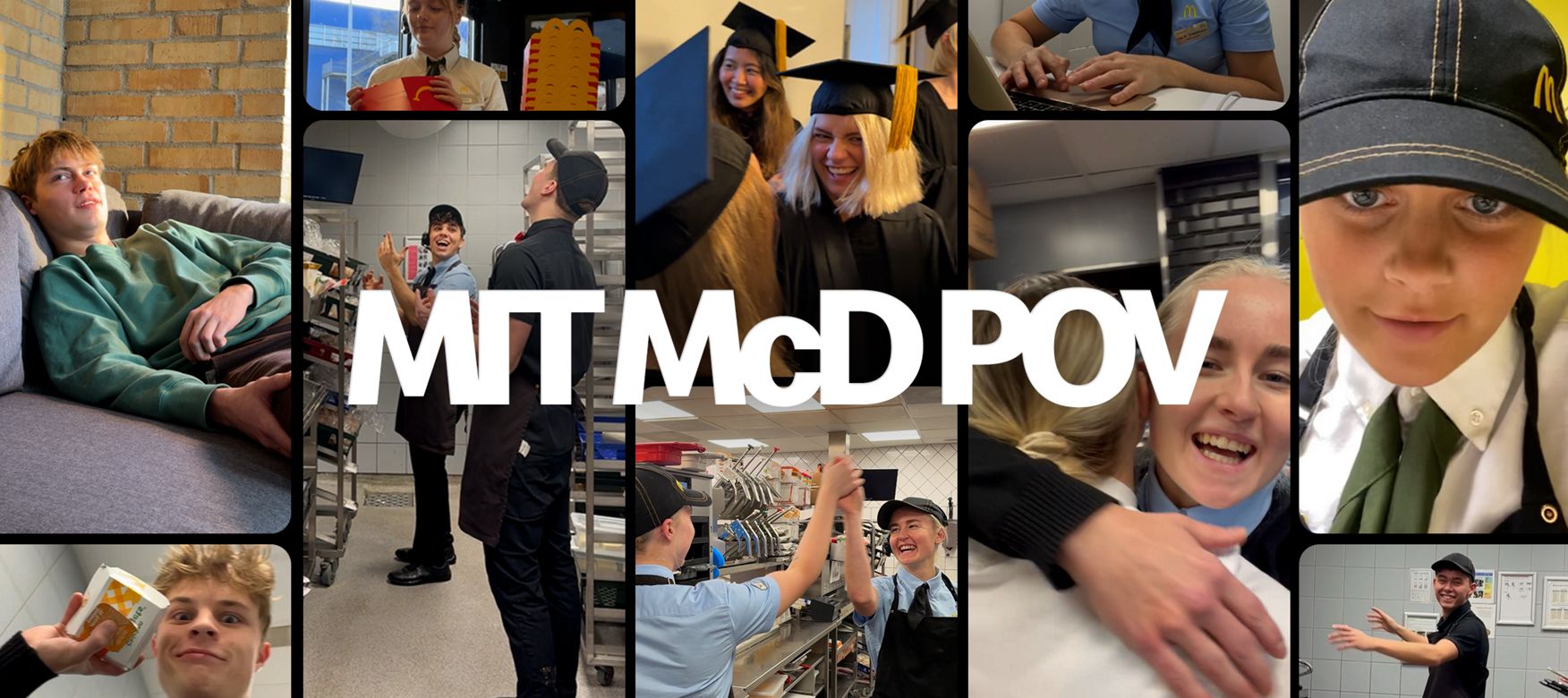 Vi har spurgt vores kollegaer, om vi måtte låne deres egne videoer til at fortælle, hvordan det er at arbejde og uddanne sig hos McDonald’s. Få et helt unikt indblik i vores hverdag her.
