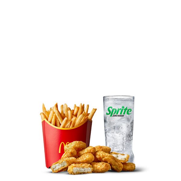 Happy Meal® med 4 stk. Chicken McNuggets. Fås med enten gulerødder eller æbler. Som drikkevare kan der vælges Arla® Økologisk minimælk, juice, kildevand eller lille sodavand. Som tilbehør vælges mellem lille pommes frites eller gulerødder. Med et Happy Meal® medfølger der altid en bog eller et stykke legetøj.