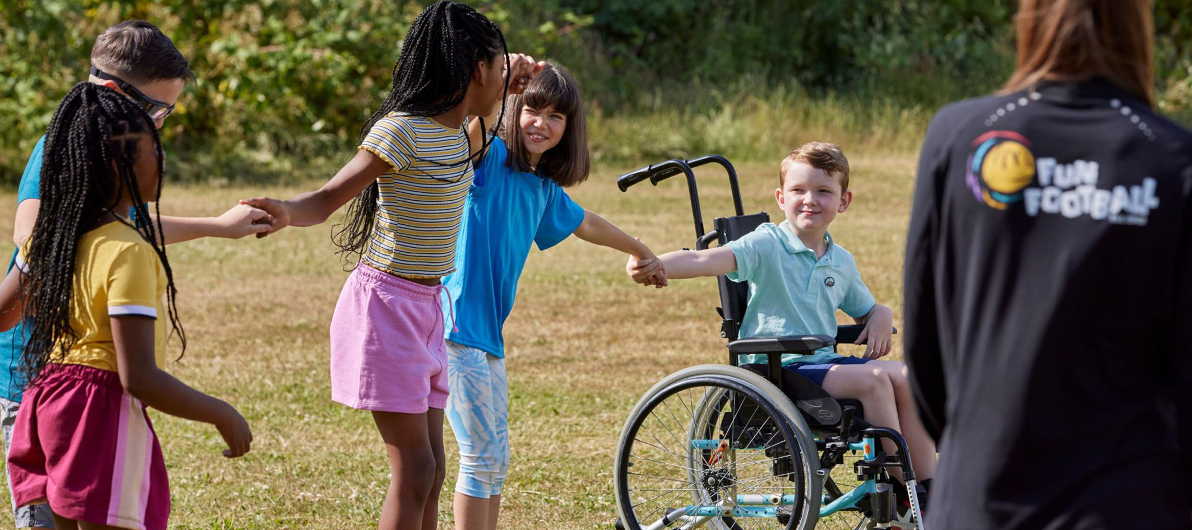 We believe that football should be a sport for everyone, regardless of experience or skill level. We are working hard with our partners to ensure our Fun Football Sessions, Festivals and Activities are becoming ever more inclusive so every child aged 5-11 can get involved in the programme in some way. We are working with a number of exciting partners including UKFA’s, British Blind Sport, Children in Need, England Futsal and Kick it Out, increasing the reach and accessibility of our free Fun Football opportunities.