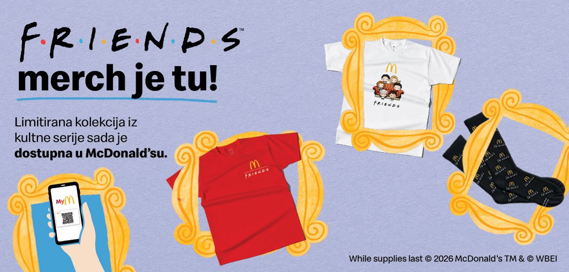 U McDonald’s aplikaciji potraži limitiranu kolekciju Friends mercha i pokaži svima koja je serija tvoj apsolutni favorit.