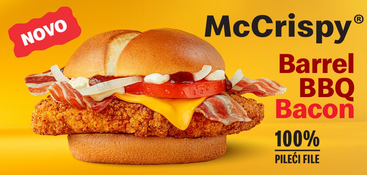 Dobro poznati McCrispy dobiva novo, još bogatije izdanje! McCrispy Barrel BBQ Bacon donosi savršen spoj hrskavosti, arome roštilja i svježine sastojaka kojem je teško odoljeti.