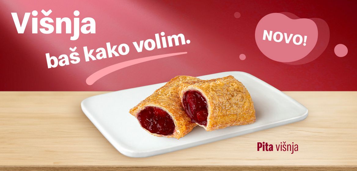 Zamisli: izvana savršeno hrskavo tijesto, iznutra sočan nadjev od višanja koji miriše već na prvi zalogaj…pravi mali trenutci sreće, bilo da je naručiš uz McCafé kavu ili nakon omiljenih slanih zalogaja.