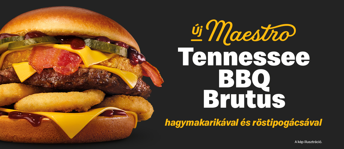 Röstipogácsa, 2db hosszú bacon, 3db hagymakarika, marhahúspogácsa és a Tennessee BBQ szósz világa. Akár hús nélküli változatban is kipróbálhatod!