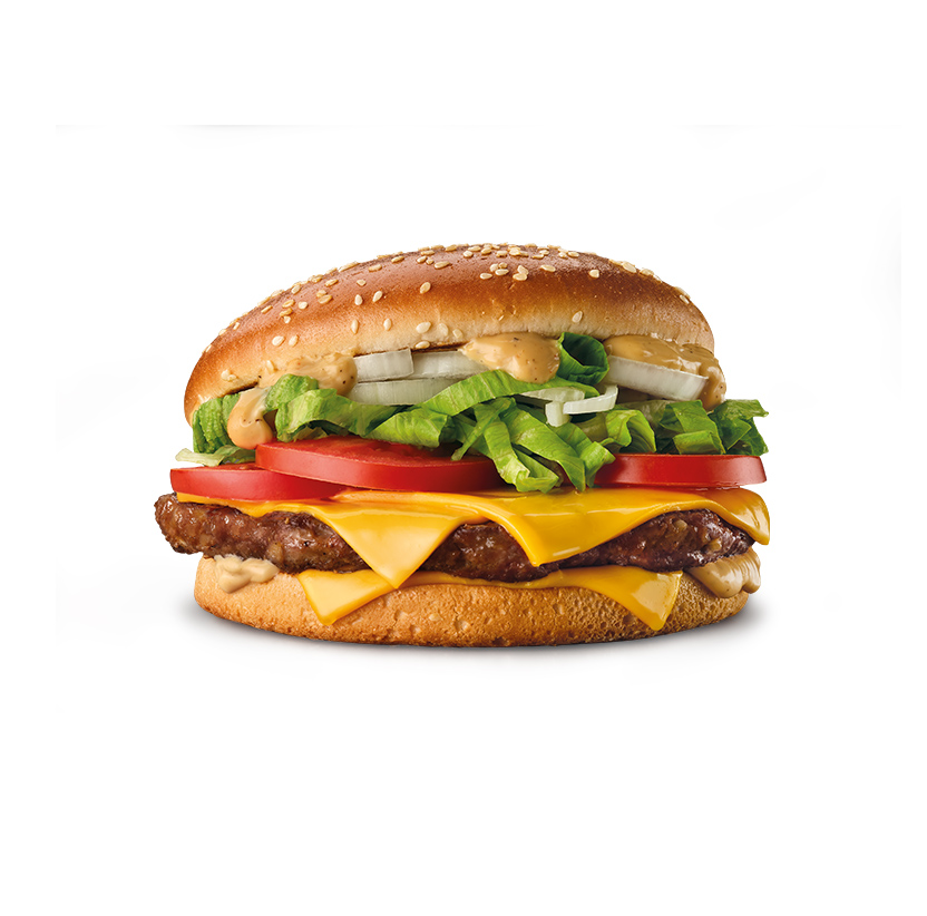 Kapaszkodjatok meg, mert az ikonikus Big Tasty® újra kapható! A 100% marhahúspogácsa három ömlesztett cheddar sajtszelet ölelésében, jégsaláta, paradicsom és hagyma harmóniájával kápráztat, amelyet a Big Tasty® szósz füstös, fűszeres ízvilága tesz felejthetetlenné, hamburger zsemlébe zárva.