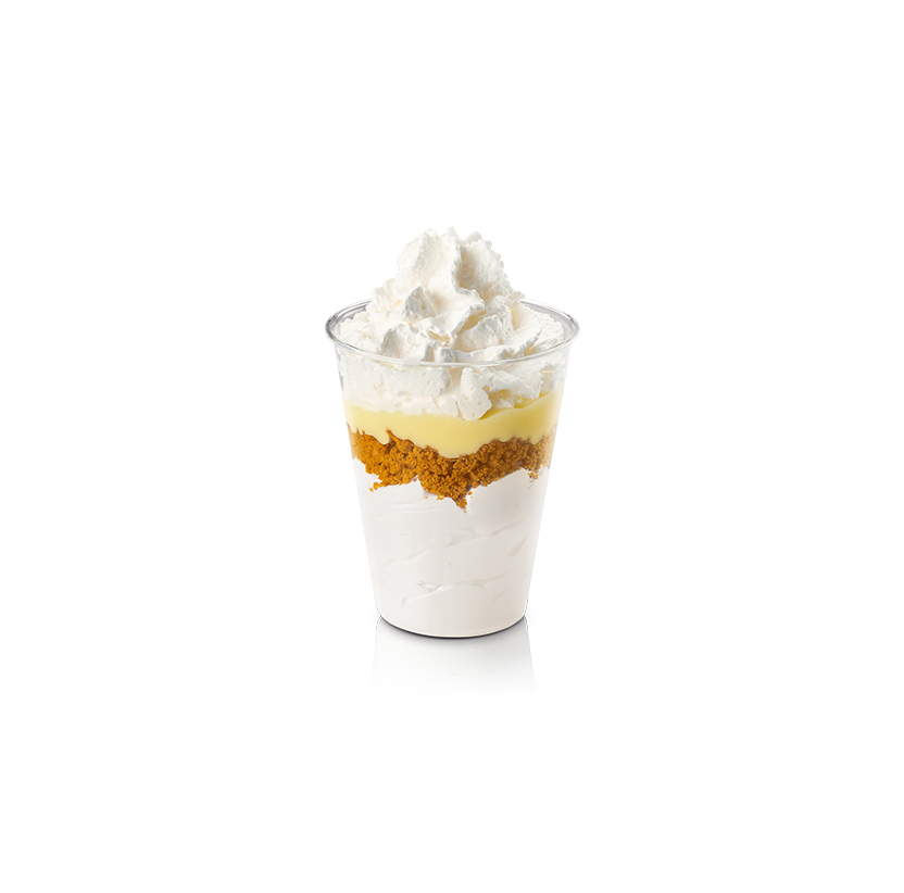 Egy igazi kikapcsolódás a sajttorta ízű öntet és a Lotus Biscoff® kekszdarabok ízvilágában, amit ikonikus fagyink és tejszínhab tesz teljessé.