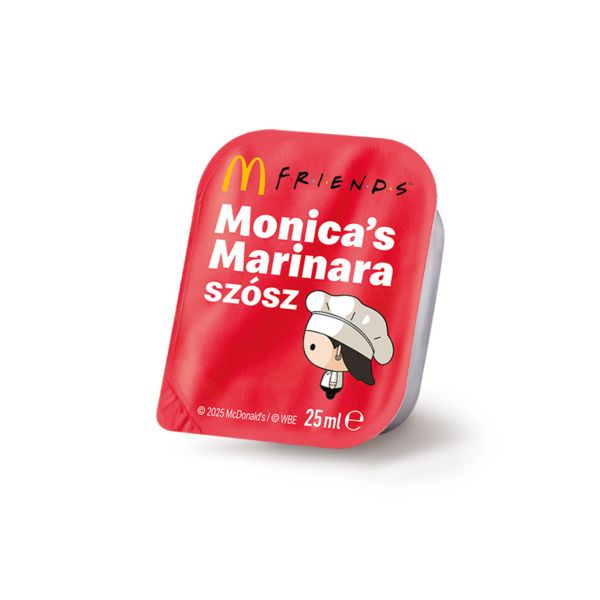 *A Friends menü időszakos termék 2026.02.02. napján kizárólag a McDonald’s applikációban található kuponajánlat beváltásával érhető el, 10:30 után. A kupon beváltásához regisztráció szükséges. Az applikációba kizárólag 16 éven felüliek regisztrálhatnak. További részletek a kuponon és az app Felhasználási Feltételekben. Az időszakos termék 2026.02.03-tól az applikáció használata nélkül, országosan, visszavonásig, illetve a készletek erejéig érhető el. Az ajánlat tartalma: 1 db Big Mac® vagy 1 db McCrispy® vagy 9 db Chicken McNuggets® és 1 db Monica’s Marinara szósz, 1 db nagy burgonya, 1 db nagy (0,5l) szénsavas üdítő vagy Lipton Ice Tea és 1 db Jóbarátok figura. A Jóbarátok figura előre nem megválasztható, éttermi készlet függvényében véletlenszerűen kerül a rendelésben kiadásra. Az ajánlat McCrispy® választása esetén a McReggeli®-t árusító éttermekben (www.mcdonalds.com/hu/hu-hu/mcreggeli.html) csak 10:30 után kapható. Az ajánlathoz 9 darabos Chicken McNuggets® választása esetén 2 db szósz jár, amelyből az egyik a Monica’s Marinara szósz, a másik választható. A képek illusztrációk. © 2026 McDonald's TM & © WBEI