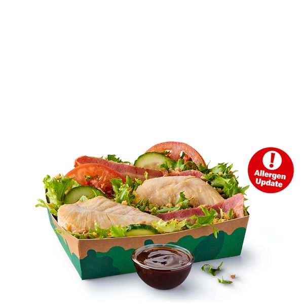 Freshly prepared salad with lettuce, cucumber, sliced tomato and crispy onions. Nutrition and allergen information do not include dressing.