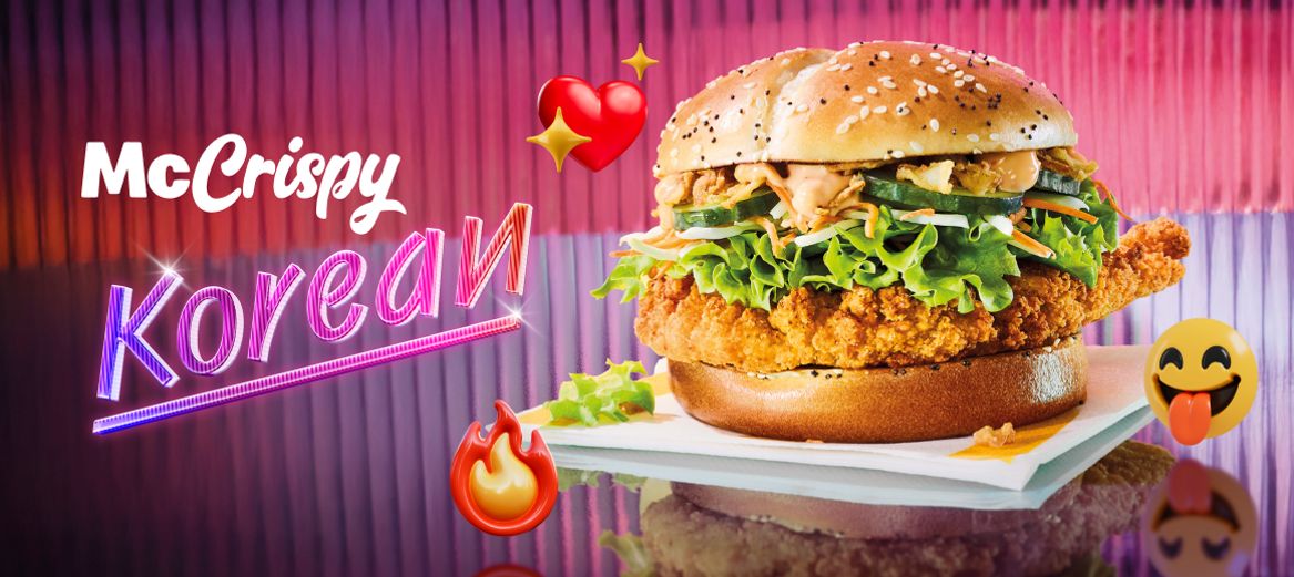 De nieuwe McCrispy Korean is een heerlijke, krokante Kipburger met een frisse Kimchi-koolmix en een licht pittige Koreaanse saus op een zachte potato bun, scoor hem nu het nog kan! Hij is ook te verkrijgen in Meatless.