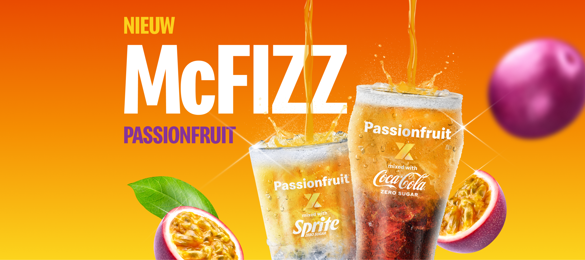 Oeh, lekkerrr! Coca-Cola (Zero Sugar) of Sprite Zero Sugar met een heerlijke passievrucht siroop twist én ijsblokjes. Welke ga jij proeven?