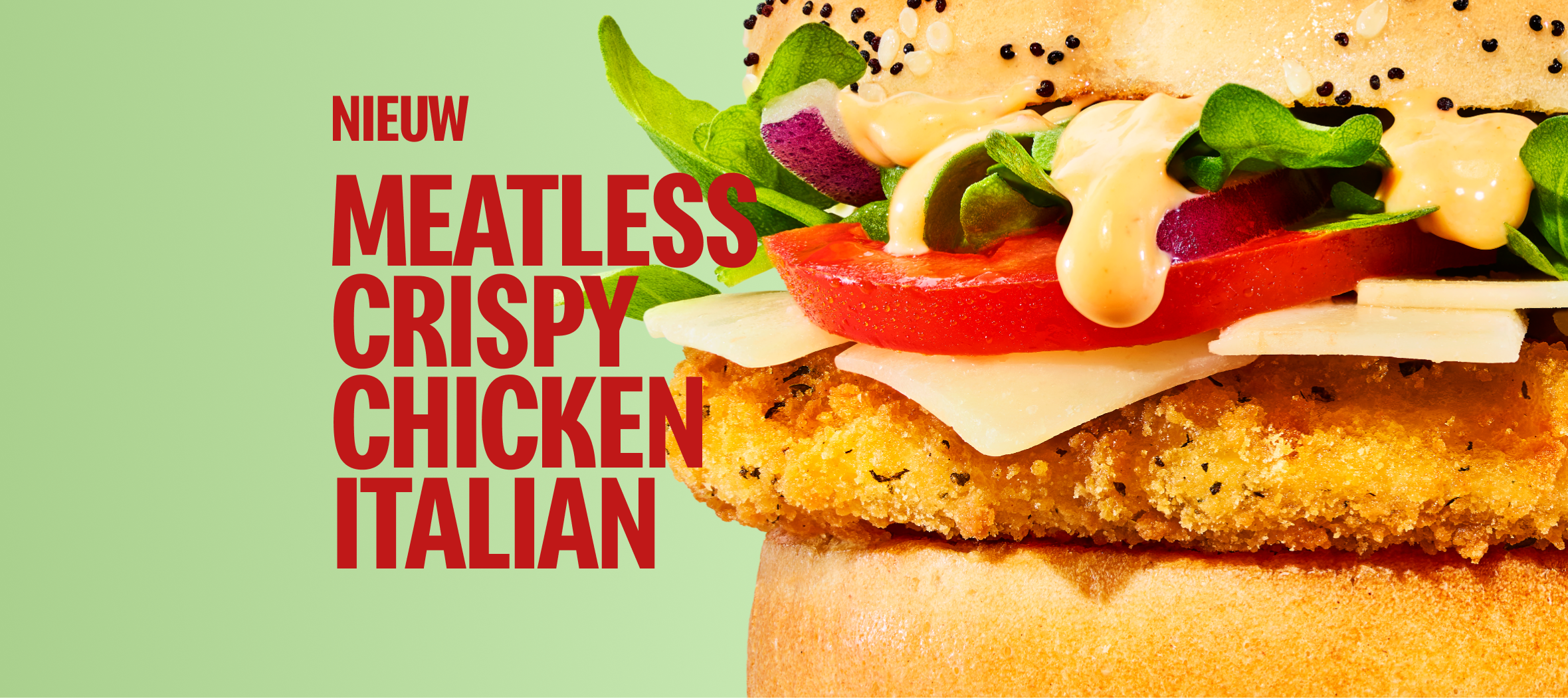 Jouw favoriete crazy crunchy kipburger mét een Italiaanse twist. Romige rode pesto saus, DOP Parmezaan flakes, zonnige tomaat, rode ui én frisse rucola op een luxe potato bun. Mammma mmmia!