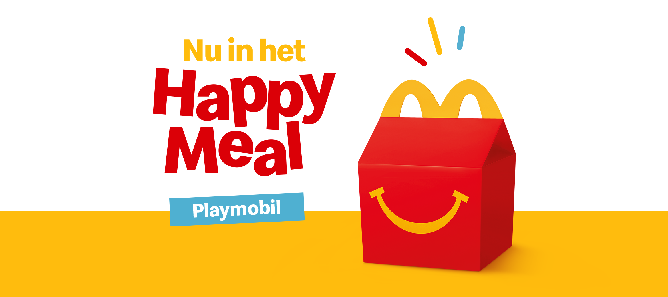 Het Happy Meal is al 40 jaar een icoon op ons menu, speciaal voor onze kleinste gasten. Naast een heerlijk gevarieerd aanbod en altijd groente of fruit in het Happy Meal, kunnen kinderen sinds 2019 kiezen tussen een boekje of speeltje. Vanaf 27 november t/m 7 januari zijn de Playmobil speeltjes in het Happy Meal te vinden.