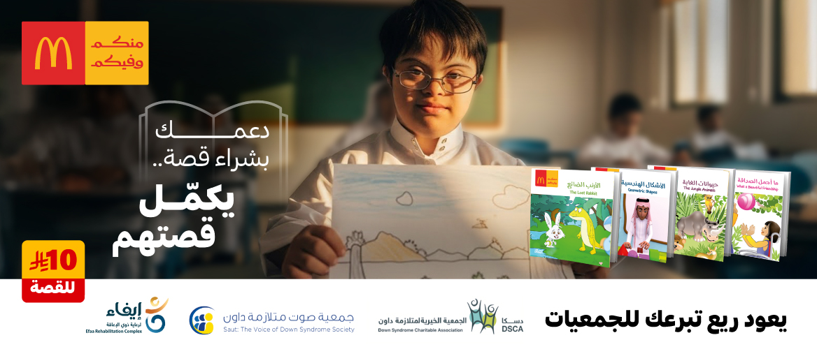 امتدادا للحملات الخيرية والتوعوية الهادفة التي تنظمها ماكدونالدز السعودية، فقد أطلقنا هذه الحملة السنوية التي تقوم ببيع القصص التربوية والتوعوية للأطفال في فروعنا خلال شهر رمضان المبارك، على أن يعود ريع بيع هذه القصص لثلاث جمعيات خيرية متخصصة بذوي متلازمة داون، وهي: جمعية صوت متلازمة داون وجمعية دسكا الخيرية وجمعية إيفاء، وذلك بهدف دعم ذوي متلازمة داون في المملكة العربية السعودية.