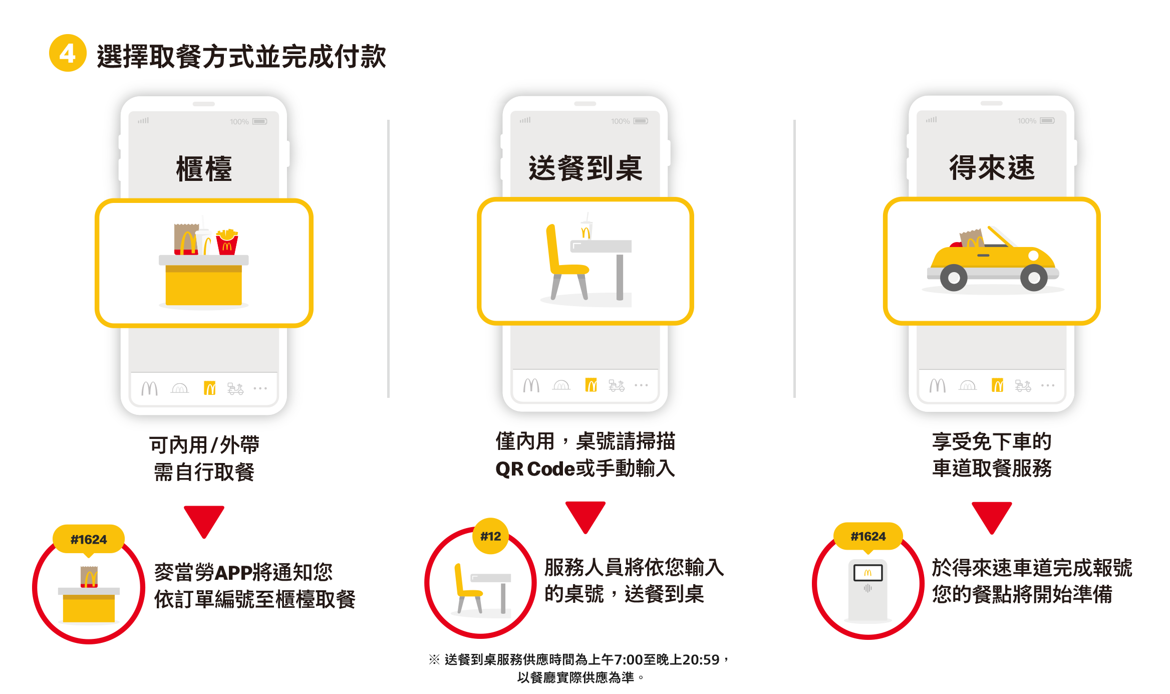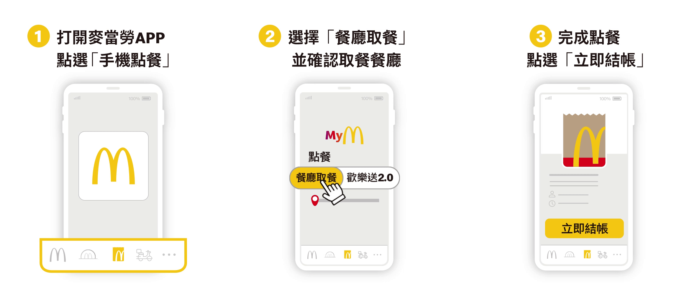 使用麥當勞APP手機點餐,打開手機就能無壓輕鬆點,點餐免排隊,不管內用/外帶/得來速,一指就搞定!