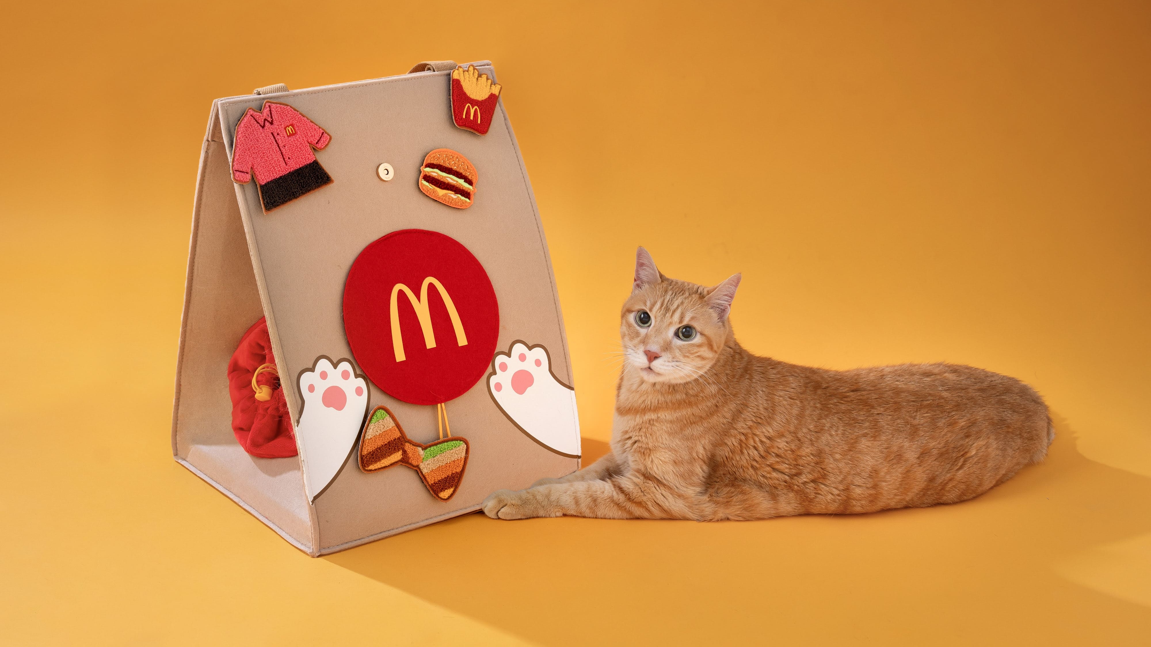 「麥粉市集」自4月15日早上10:30起售完為止,首波推出「麥麥萌選品」,包含「麥麥萌背包」與「麥麥貓窩袋」兩款限定商品。「麥麥萌背包」以麥當勞經典紅黃配色設計,風格俏皮活潑又實用,憑1,000 M Point 加價 399元即可獲得;「麥麥貓窩袋」以麥當勞經典外帶紙袋造型為靈感,化身為毛小孩專屬居家小窩,憑 1,000 M Point 加價599元即可入手。顧客可於麥當勞APP「麥粉市集」專區,以M Point兌換兩款商品之加價購優惠券,持優惠券至全台指定100間麥當勞餐廳櫃檯完成付款後即可領取商品,各品項全台限量3,500組,售完為止。