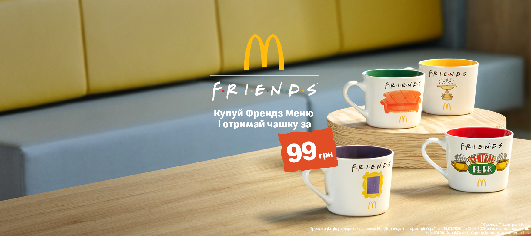 Що може бути крутіше за каву й улюблений серіал? Тільки кава у власній лімітованій чашці «Друзів»! Замовляй Френдз Меню та отримай свою чашку за суперціною!