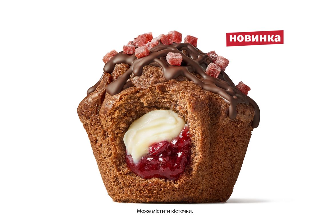 Ніжна кремово-вишнева начинка в надзвичайно м’якому мафіні, политому чорним шоколадом.